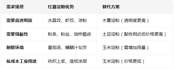 五、不同淀粉的替代場(chǎng)景對(duì)比